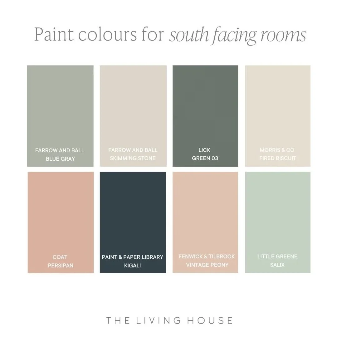 8 paint colours for a south facing room